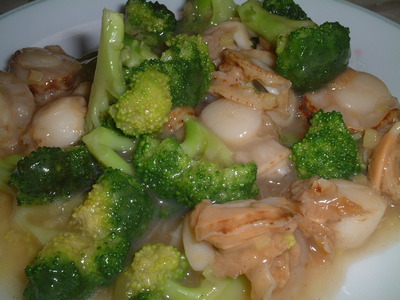 香りがでたら、ベビーホタテを1分ほど炒める。